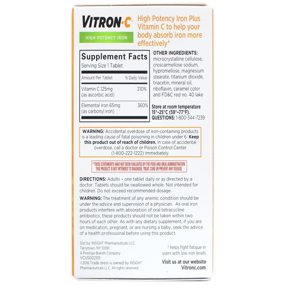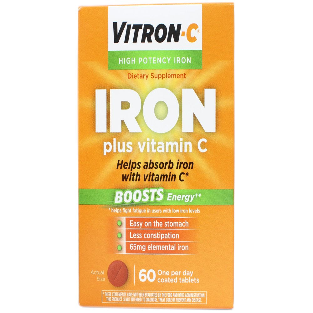 • Contains 1 pack of Vitron-C High Potency Iron Supplement Plus Vitamin C, 60 tablets, packaging and product may vary