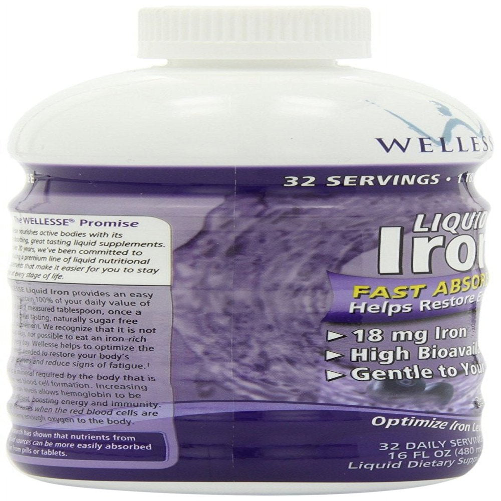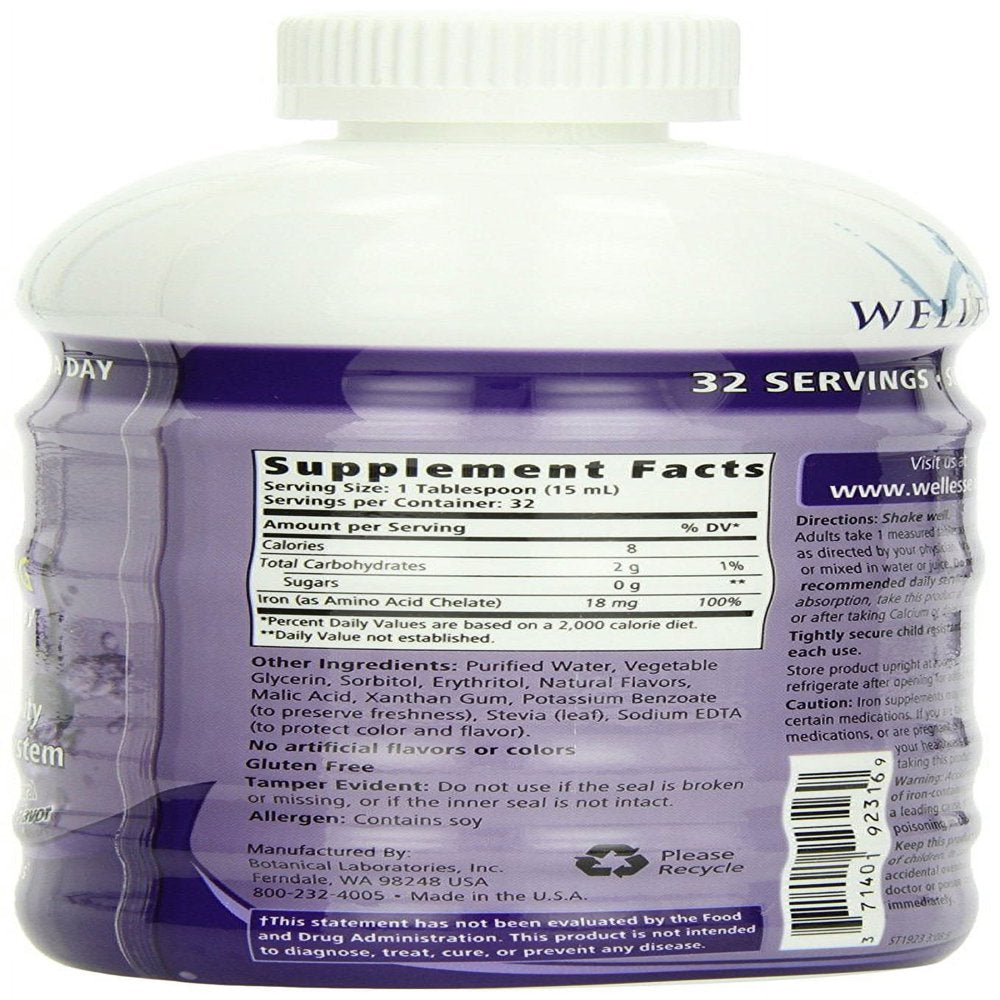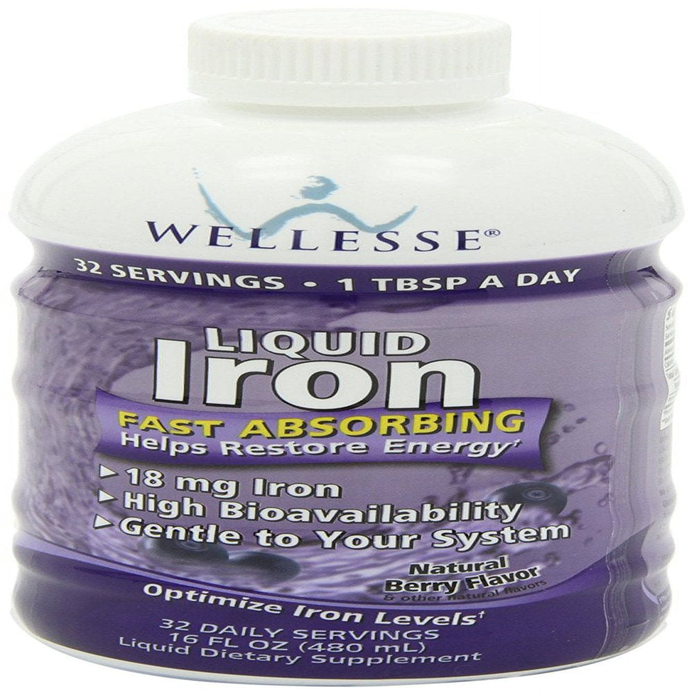 WELLESSE Liquid Mineral Supplement, Iron, Natural Berry, 16 Ounce