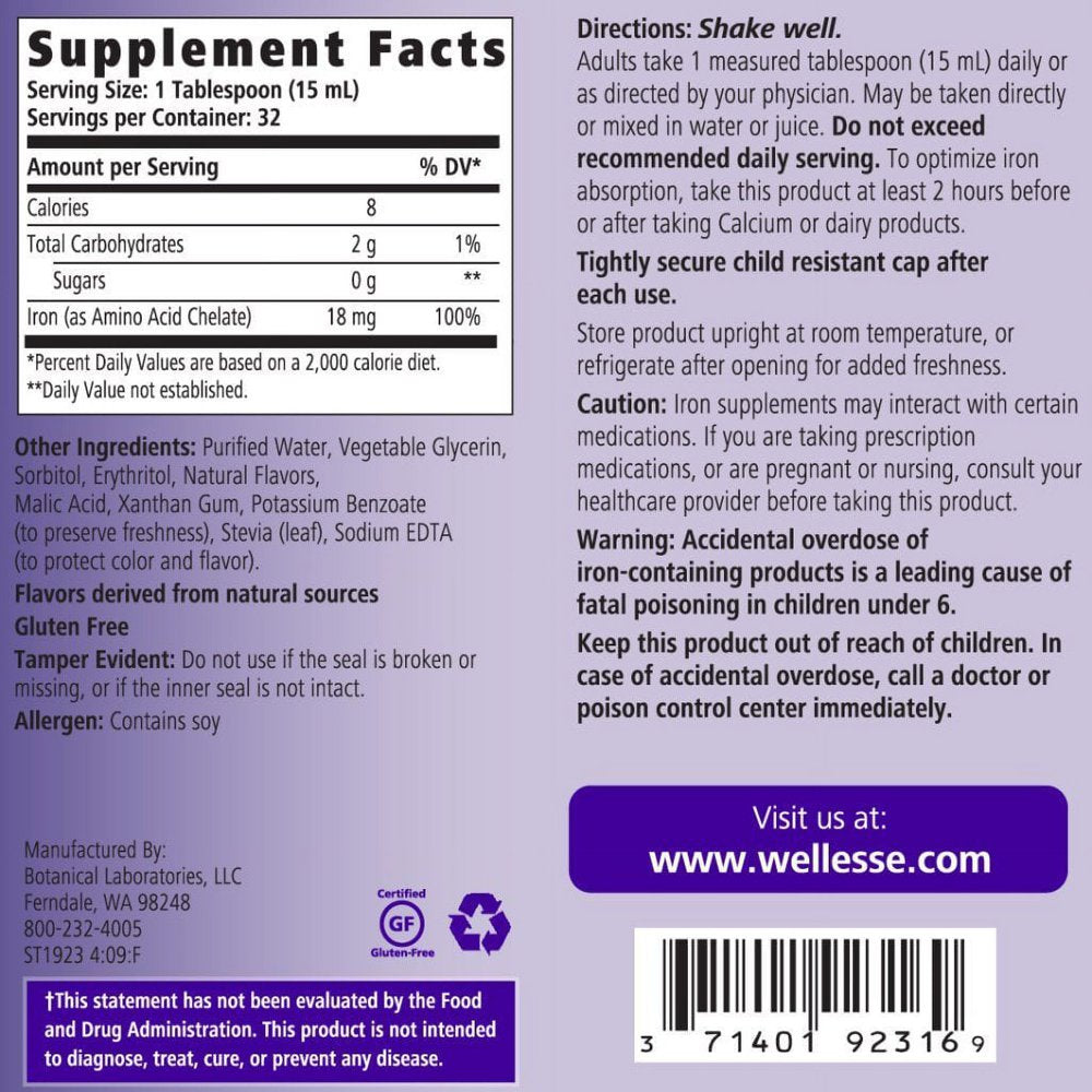 WELLESSE Liquid Mineral Supplement, Iron, Natural Berry, 16 Ounce is backordered and will ship as soon as it is back in stock.