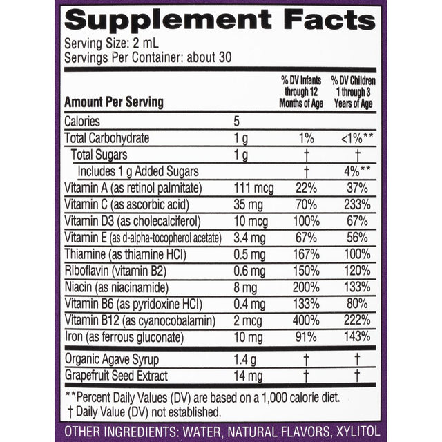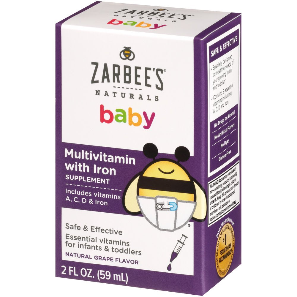 Zarbee'S Naturals Baby Multivitamin with Iron Supplement, Grape, 2 Fl Oz