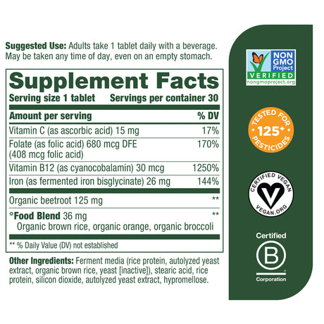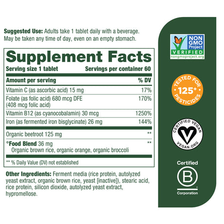 Megafood Blood Builder 60 Tabs Increases Iron Level *