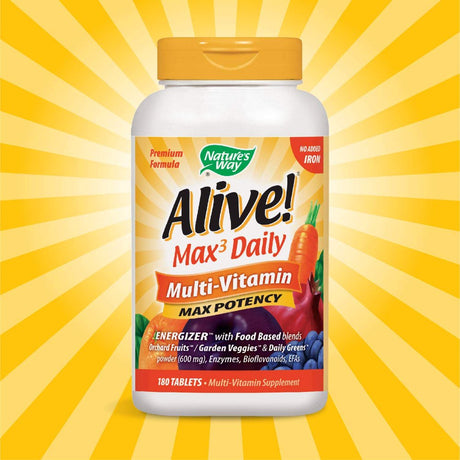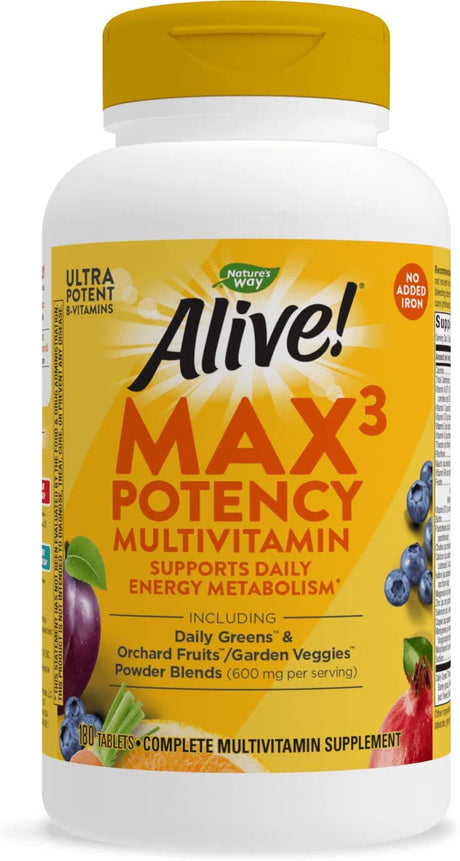 Nature'S Way Alive! Max3 Potency Multivitamin, High Potency B-Vitamins, No Iron, 180 Tablets