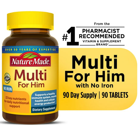 Nature Made Multivitamin for Him with No Iron Tablets, Mens Multivitamin, 90 Count