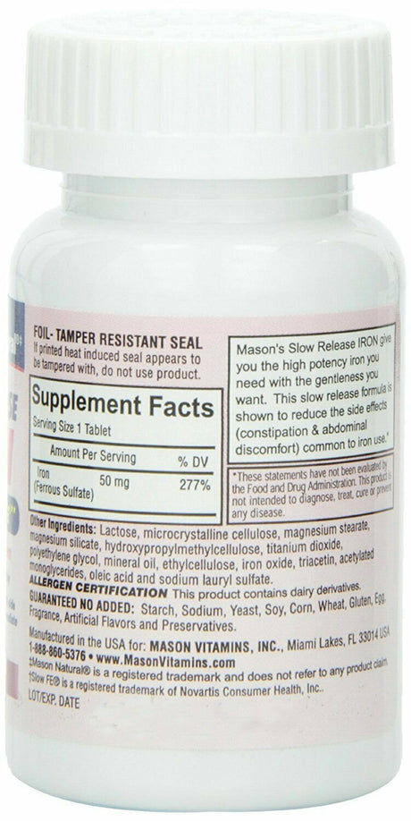 Mason Natural Slow Release Iron Tablets, 60 Ea (Pack of 2)