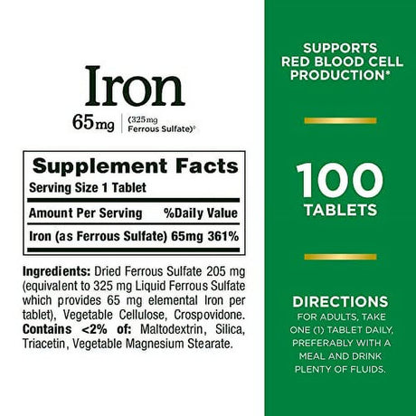 Nature Made Iron 65 Mg (325 Mg Ferrous Sulfate) Tablets, Dietary Supplement, 150 Count