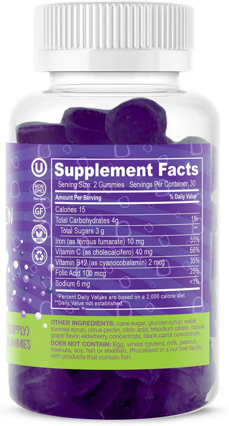 Dippin' Dots - Iron, Vitamin C & B12 Gummy Supplements (60 Count)
