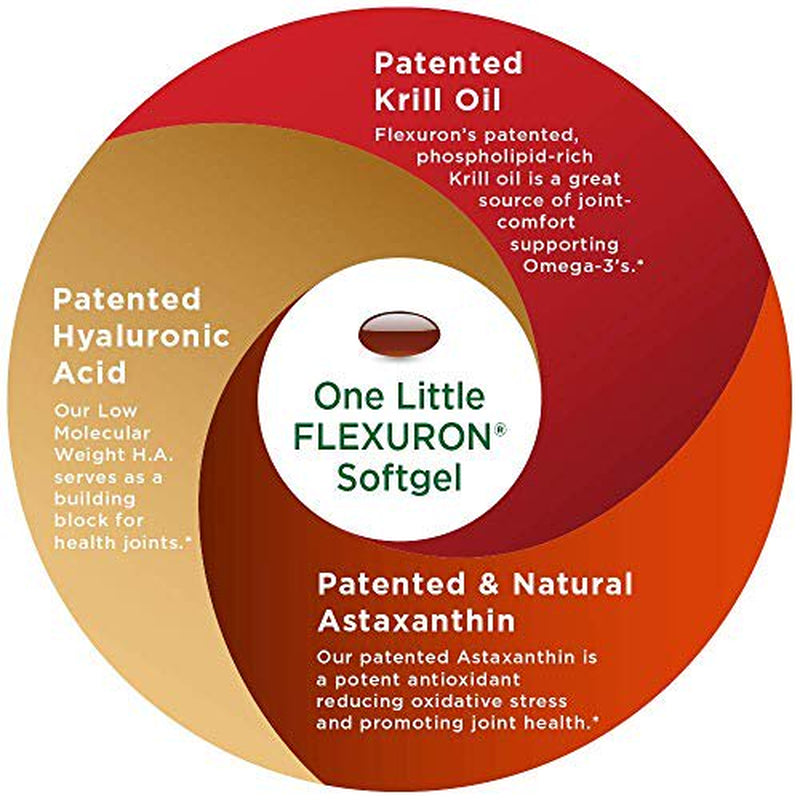 Flexuron Joint Formula by Purity Products - 3X Better than Glucosamine and Chondroitin - Starts Working in just 7 Days - Krill Oil, Low Molecular Weight Hyaluronic Acid, Astaxanthin - 30 count