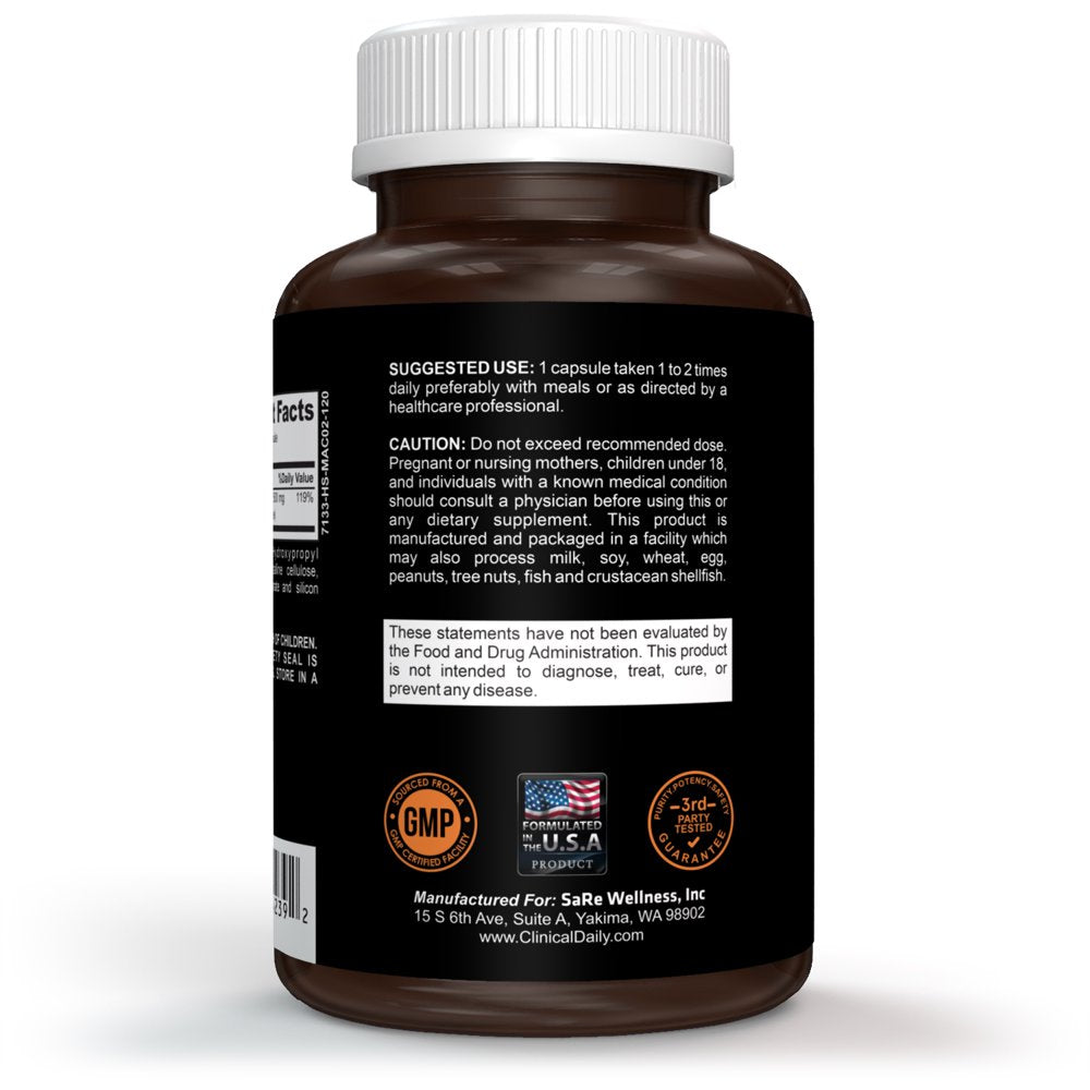 CLINICAL DAILY Pure Magnesium Citrate Capsules High Potency 500Mg with Natural Magnesium Oxide. Vegan Magnesium Supplement for Women and Men Supports Rest, Enzyme and Nerve Function. 120 Ct 2 Months