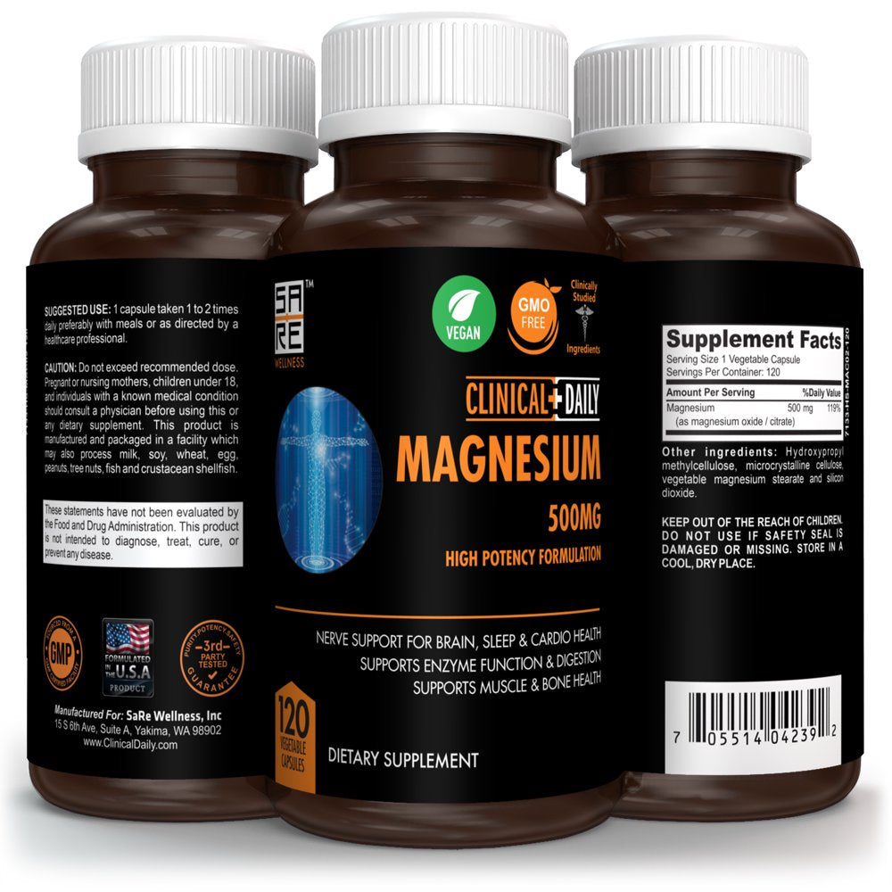 CLINICAL DAILY Pure Magnesium Citrate Capsules High Potency 500Mg with Natural Magnesium Oxide. Vegan Magnesium Supplement for Women and Men Supports Rest, Enzyme and Nerve Function. 120 Ct 2 Months is backordered and will ship as soon as it is back in stock.