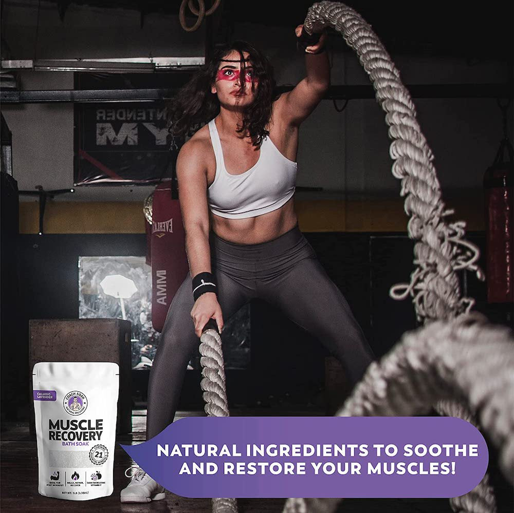 SOOTHE SORE MUSCLES & JOINTS - Our Calmin Lavender scent muscle recovery bath salt is formulated with fast-absorbing magnesium flakes, mineral-rich dead sea salts, Vitamin C crystals, and pure essential oils to reduce inflammation and speed up the recovery process. Simply soak for 20 minutes to enjoy the ultimate pain relieving sore muscle bath! Our sport soak is perfect for post-workout recovery for athletes. Both men and women enjoy the relaxing benefits of our bath salts for muscle soreness.