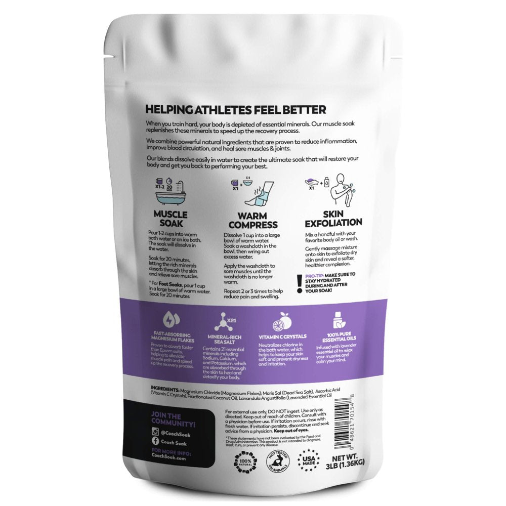 Coach Soak: Muscle Recovery Bath Soak - Natural Magnesium Muscle Relief & Joint Soother - Calming Lavender