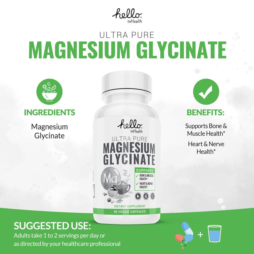 Our magnesium glycinate is formulated with pure magnesium delivering potent stress relief straight to the source! The Hello to Health magnesium pills will enable your body to absorb and easily process all the benefits magnesium glycinate has to offer. An innovator in stress relief and sleep support, our magnesium supplement for women and men goes to work fast ensuring you get the benefits you are looking for from magnesium glycinate.