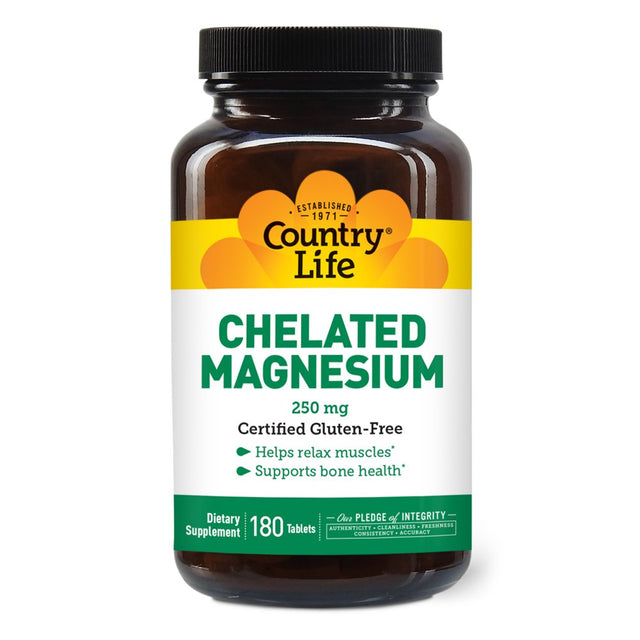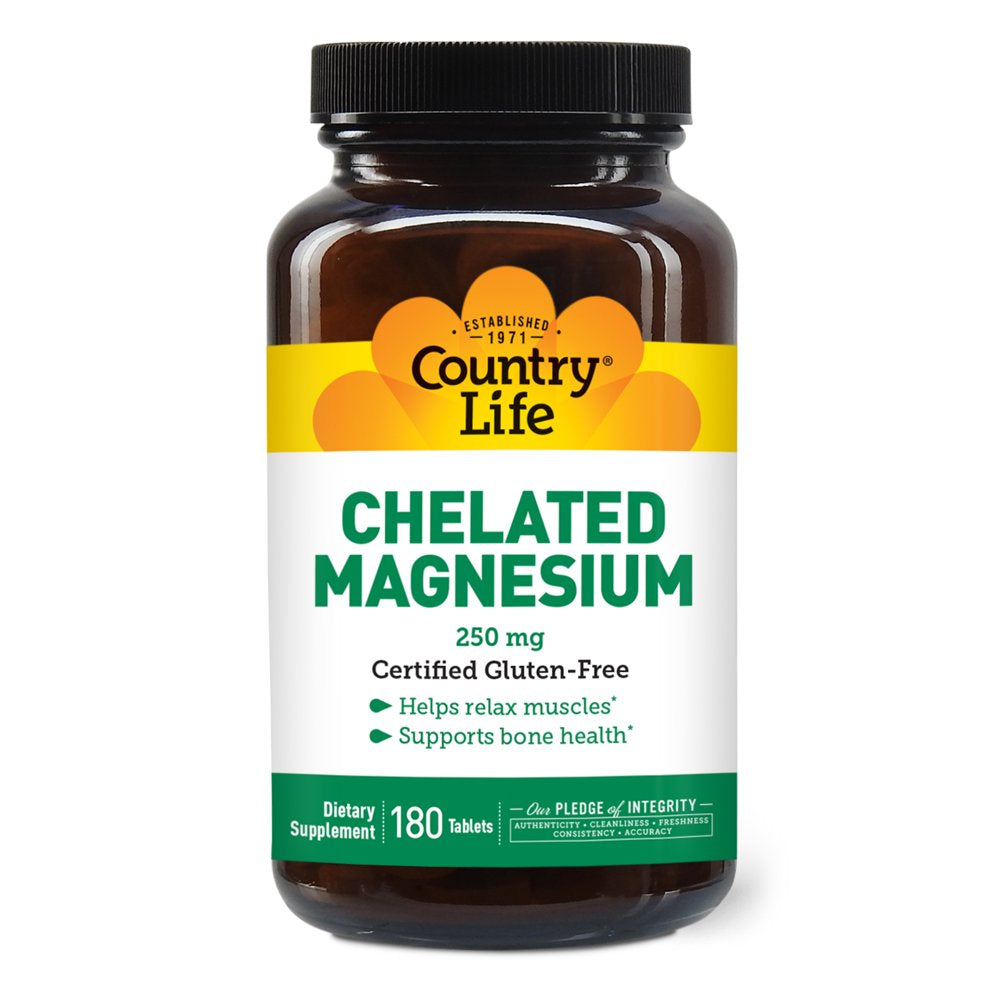 Country Life Chelated Magnesium Tablets 250Mg, 180 Count, Certified Gluten Free, Certified Vegan