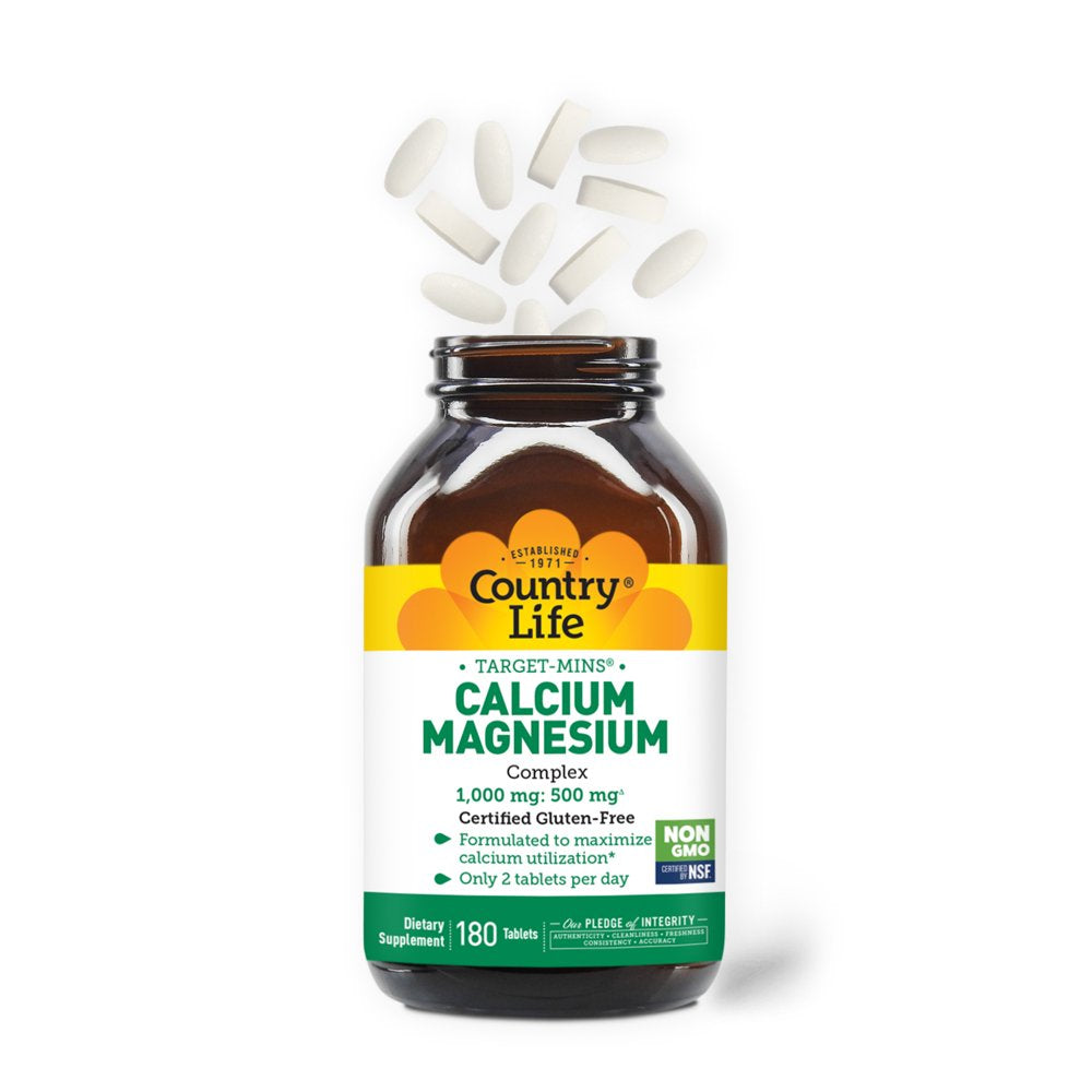 Country Life Target-Mins Calcium-Magnesium Complex, 1,000 Mg, 180 Tablets (500 Mg per Tablet)