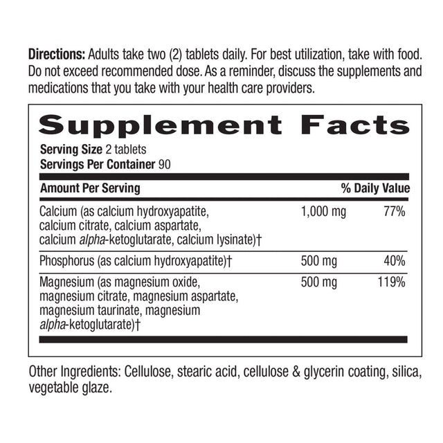 Supports calcium utilization - uses a calcium to phosphorus and calcium to magnesium ratio of 2:1 to support calcium utilization and the body’s availability of calcium. This healthful blend of calcium and magnesium contains 1000mg calcium, 500mg magnesium and 500mg phosphorus per serving