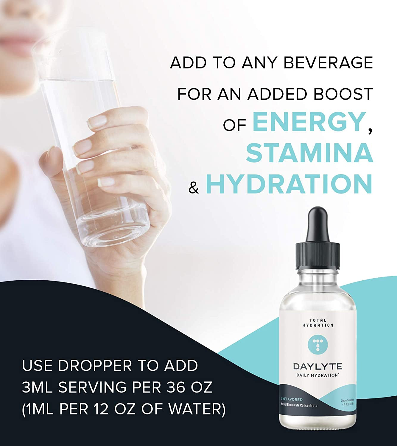 - Quickly Restore Lost Electrolytes: Stay energized and hydrated with the Daylyte Electrolyte Drops Hydration - electrolyte mineral trace drops for water specially formulated to increase energy, promote rapid rejuvenation, and hydration after strenuous activities like working out.