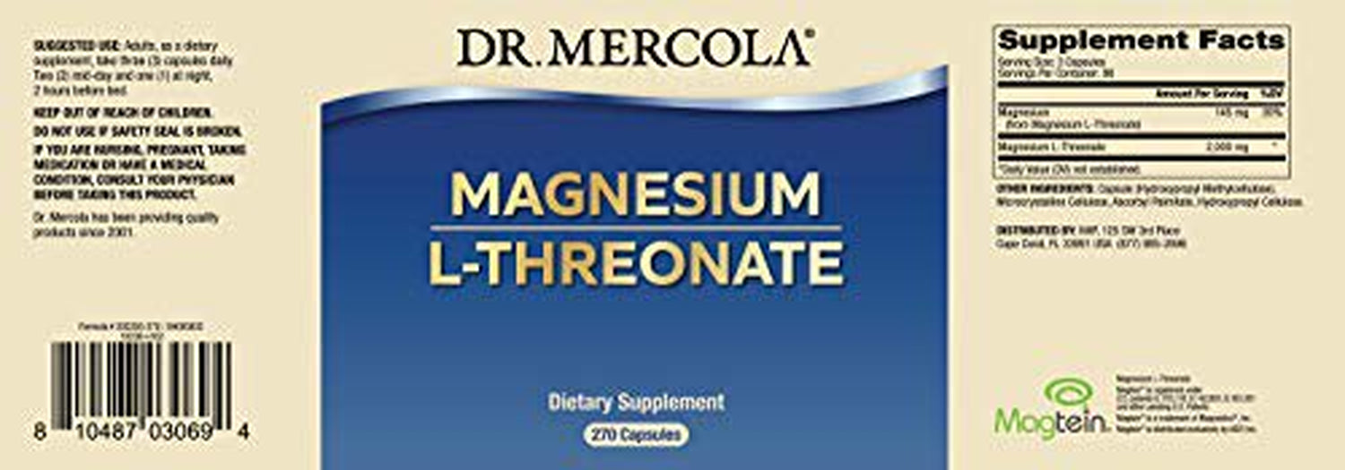 Dr. Mercola, Magnesium L-Threonate, 2,000 Mg per Serving, 90 Servings (270 Capsules)