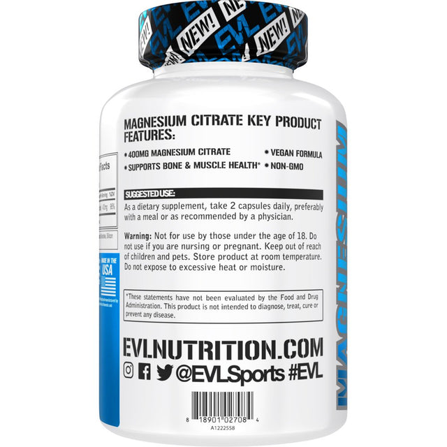 Evlution Nutrition Magnesium Citrate 400Mg for Bone & Muscle Health and Natural Sleep Support, 60Ct Capsules