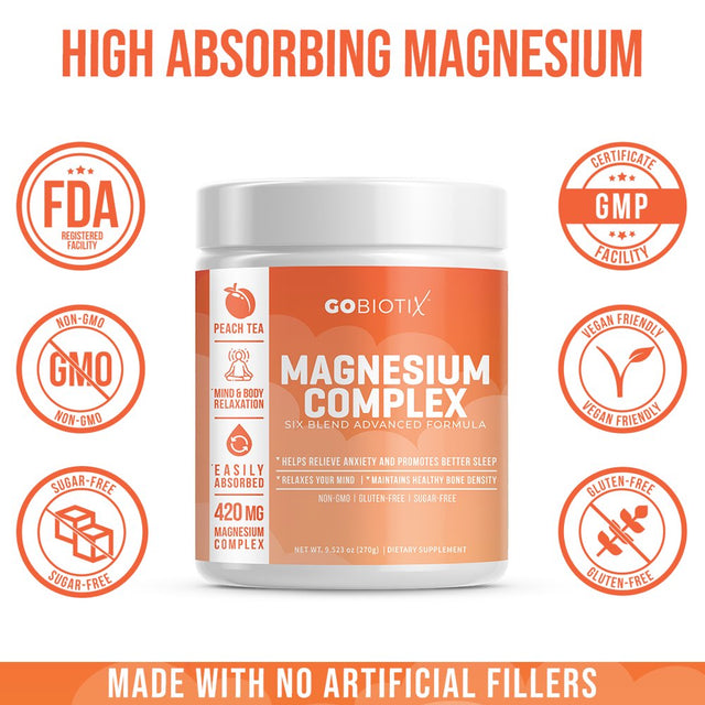 Gobiotix Magnesium Complex Powder - Supplement for Sleep, Stress Relief, Muscle Relaxation - Peach Tea - Peach Tea is backordered and will ship as soon as it is back in stock.