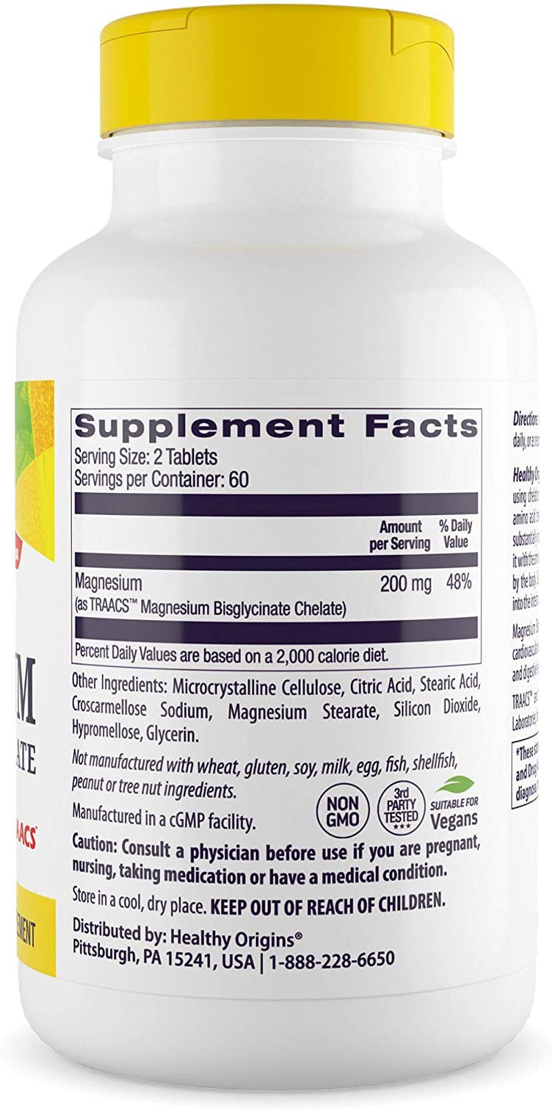 Healthy Origins Magnesium Bisglycinate Chelate (Albion Minerals, Non-Gmo, Gluten Free, Cardiovascular Support, Bone Support, Neurological Support, Vegan), 120 Tablets