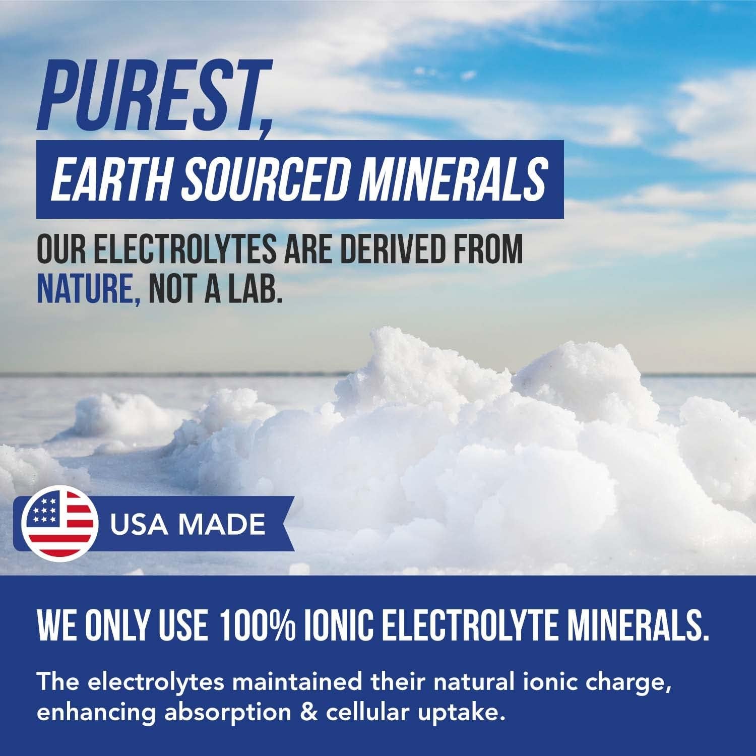 - PERFECTLY PURIFIED, IONICALLY CHARGED SEA MINERALS: Ionic Lytes is derived from the purest source of ionically charged sea minerals. Using a 12-point extraction and purification process, we provide perfectly purified electrolytes while maintaining the natural ionic charge and nano-particle size.