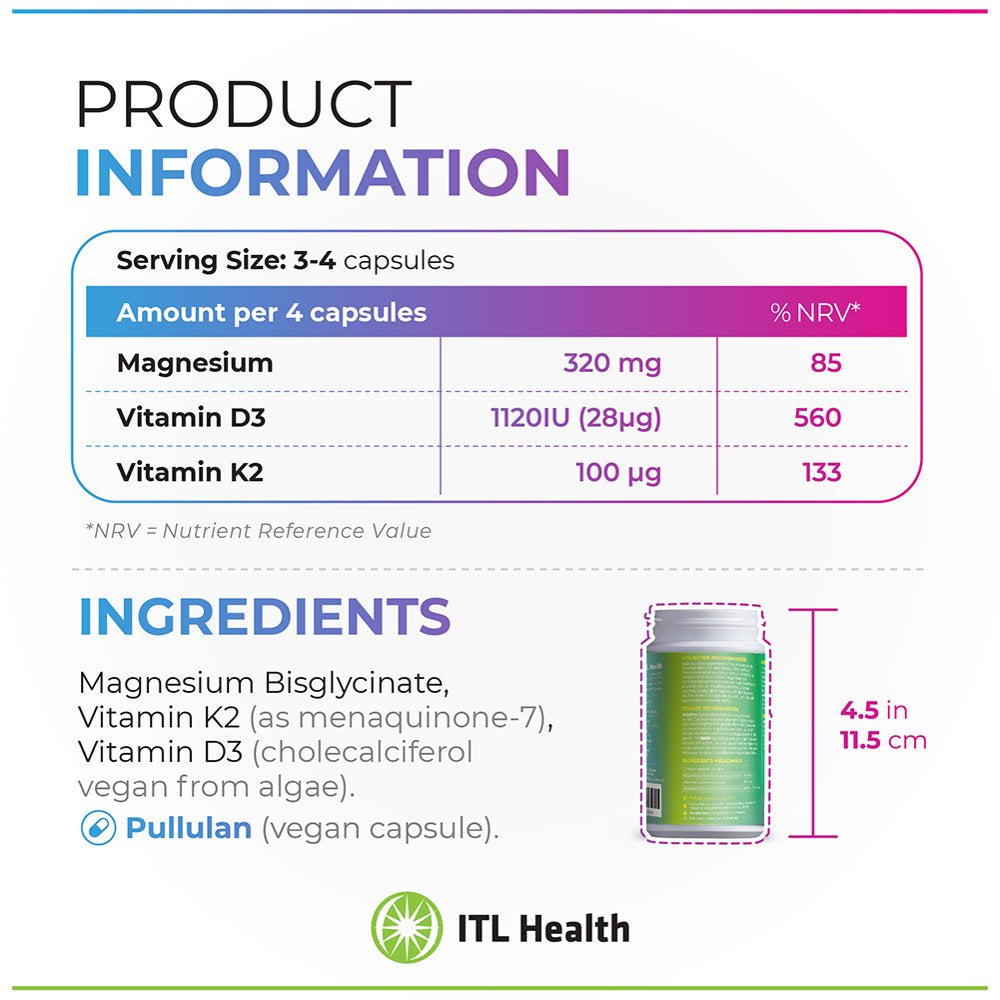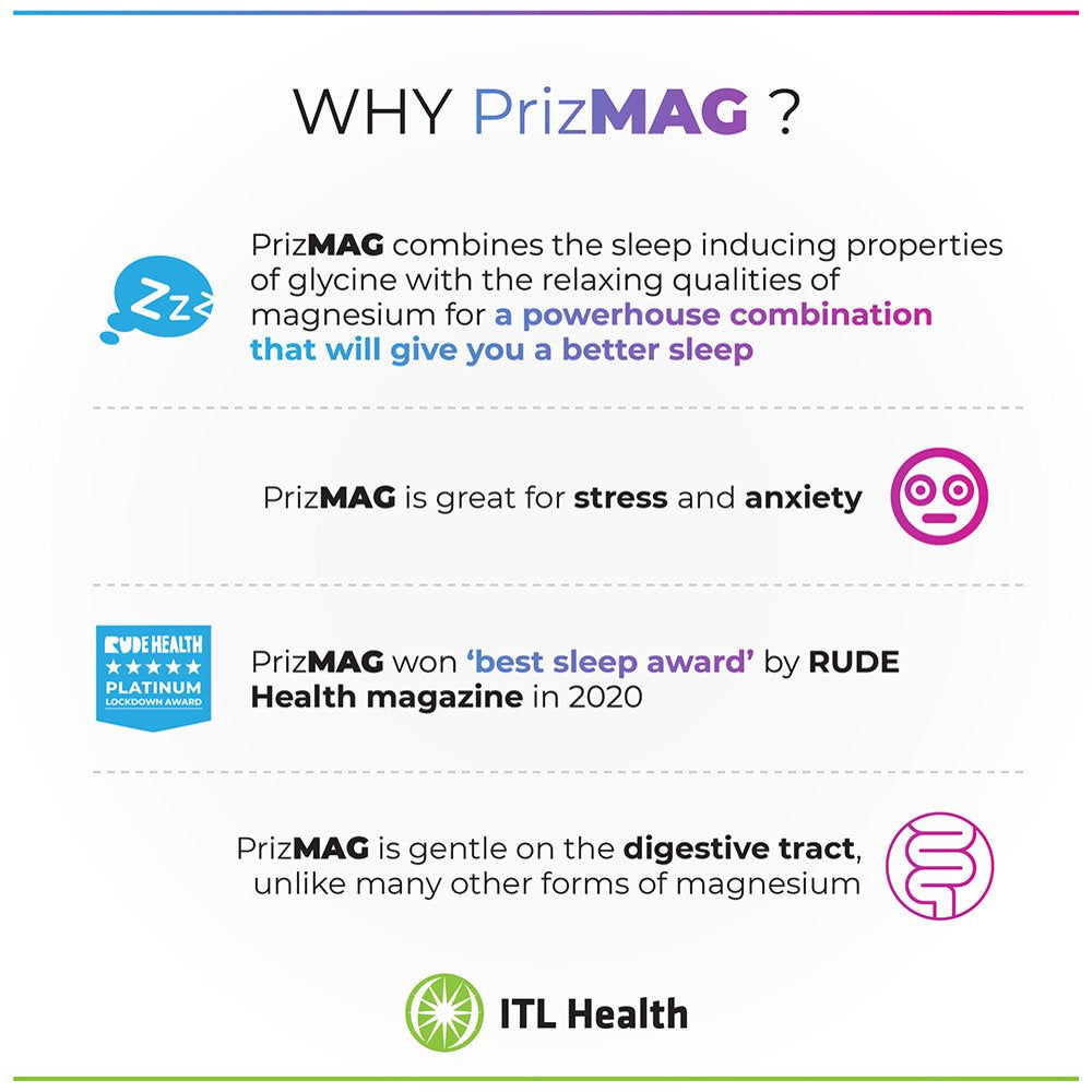 ITL Health MAG365 Prizmag Pure Magnesium Bisglycinate Pullulan Vegan Capsules | Promotes Healthy Sleep for Adults | Support Healthy, Normal Bones, Teeth and Nervous System | 90 Count