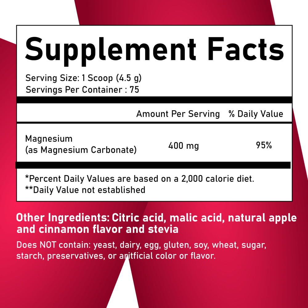 400 mg magnesium in a highly absorbable form. Unflavored (plain). Magnesium is the most important mineral the body generally requires. It supports healthy magnesium levels to ease or prevent deficiency symptoms: Stress, Inability to Sleep, Anxiousness, Nervousness, Headaches, Constipation, PMS, Hormonal Imbalances, Abnormal Heart, Rhythm, Fatigue, Low Energy, Muscle Tension, Spasms, Cramps, Aches, Irritability, Weakness, Weakening Bones, Pain in lower back.