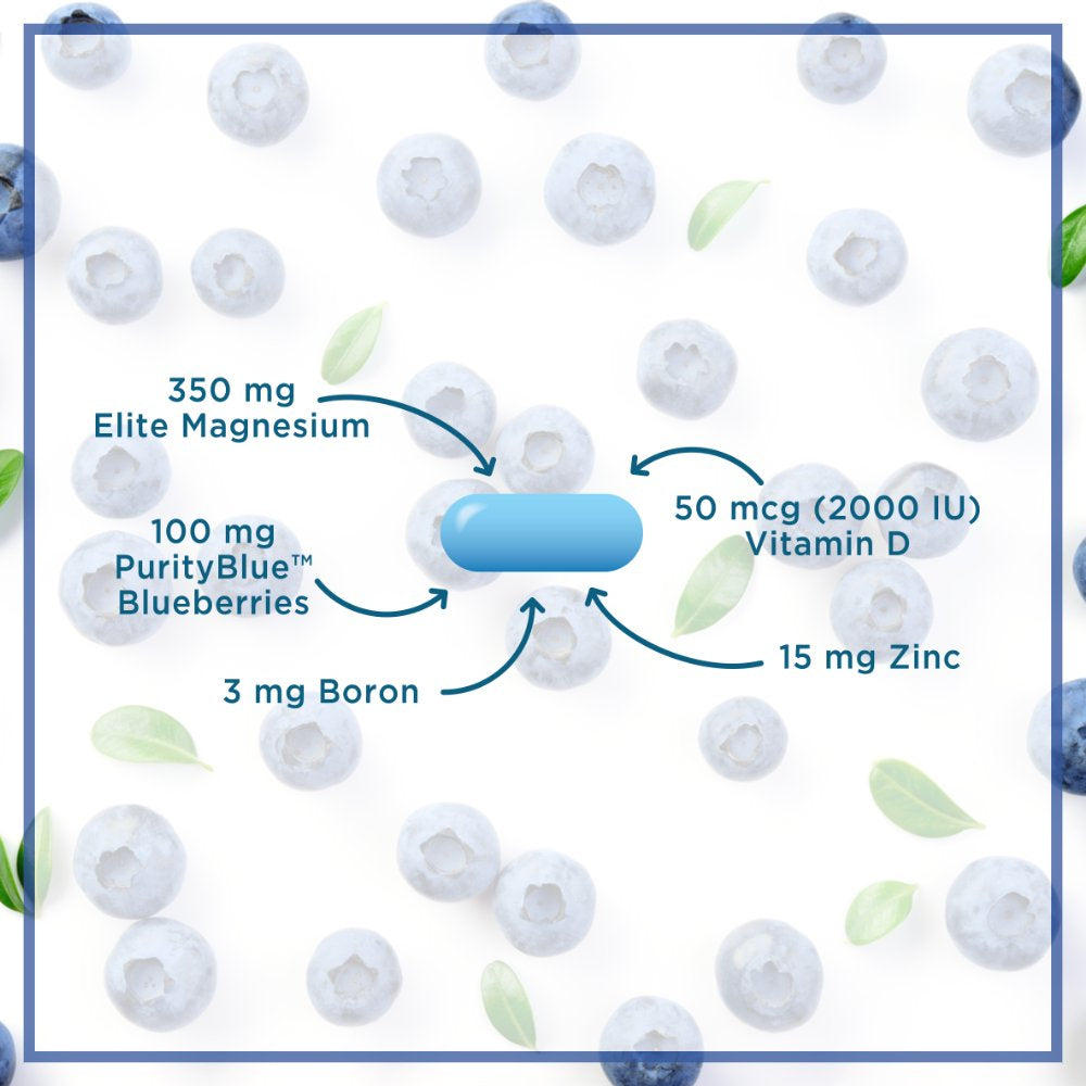 A UNIQUE COMBINATION OF ELITE MAGNESIUM AND SUPERACTIVE WILD ORGANIC BLUEBERRIES Most magnesium supplements on the market these days are just that — magnesium only. But if you truly want the most out of magnesium for your heart, brain, mood, muscle, and more then you need a high-absorption form and you need to surround it with the right co-factors to maximize the benefits.* That’s why we created MagBlue — a unique formula that combines high-absorption 100% TRAACS Magnesium Bisglycinate Chelate Buffered with a high antioxidant organic wild blueberry complex known as PurityBlue. Plus, we put in an array of powerful co-factors to round out this high potency formula. Then we wrapped the whole thing in an amazing new easy-to-swallow technology called SlipTech Clean Finish. With SlipTech, each MagBlue tablet smoothly glides down your throat without any harsh edges. This is one great innovation in nutritional supplement manufacturing! THE AWESOME ANTIOXIDANT POWER OF PURITYBLUE ORGANIC BLUEBERRIES* There's something to be said about adversity helping us to grow stronger, and that is certainly the case for the PurityBlue Blueberries inside MagBlue. Wild, organic, high in antioxidant power and grown in the harsh, high latitude regions of North America, these blueberries experience the hardship of unrelenting sun during summer and then undergo the challenges of frigid temperatures and hard winds in the winter. This inhospitable climate greatly boosts their antioxidant capacity. This leads PurityBlue Blueberries to a hearty flavonoid profile — with MORE Antioxidant power than blueberries grown in lower latitudes. And that means more antioxidant protection for your immune system, along with the amazing ability to support overall wellness and healthy brain function.* PLUS — we’ve added key vitamin and mineral co-factors to MagBlue to give you a comprehensive magnesium formula that turns this “cellular governor” into a full-body coat of super armor! With Vitamin D, Zinc, and Boron in the mix, MagBlue provides one-stop support inside and out, from head to toe.