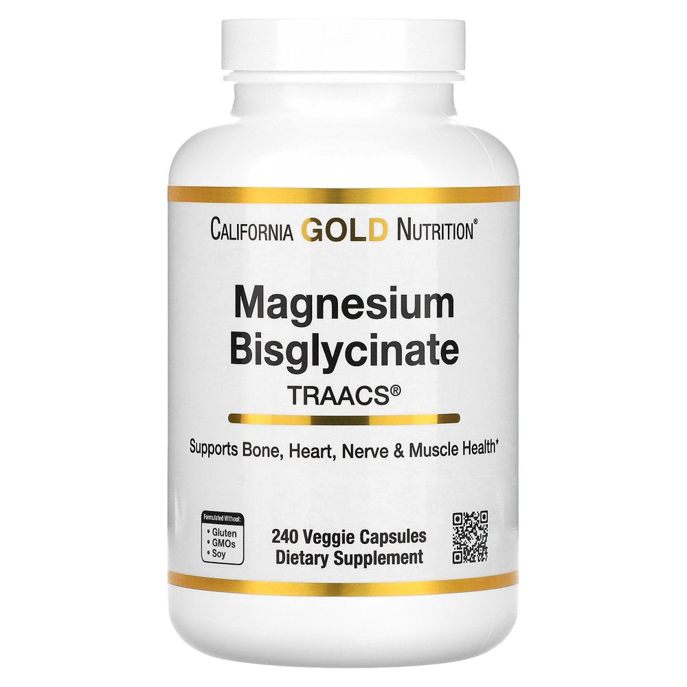 California Gold Nutrition Magnesium Bisglycinate Formulated with TRAACS® Supports Bone, Heart, Nerve, and Muscle Health* Suitable for Vegetarians and Vegans Formulated without Gluten, GMOs, or Soy Produced in a 3rd Party Audited cGMP Registered (Certified) Facility 100% Gold Guarantee Magnesium is an essential mineral and is an important part of maintaining your health. California Gold Nutrition Magnesium Bisglycinate is formulated with a special form of magnesium, known as magnesium bisglycinate chelate, which is highly absorbable and supports bone, heart, nerve, and muscle health.* Magnesium Benefits Magnesium plays many crucial roles in the body, as it is responsible for over 300 different biochemical reactions. It helps support bone development and maintenance, muscle and nerve function, cardiovascular health, and much more.* Some forms of magnesium, like magnesium bisglycinate, can help the body more efficiently than others due to its bioavailability. Research suggests that when compared to other forms, magnesium bisglycinate chelate is four times more absorbable than magnesium oxide.* California Gold Nutrition Magnesium Bisglycinate contains a high-absorption form of magnesium made with TRAACS®. This branded ingredient, which stands for “The Real Amino Acid Chelate System,'' was created by Albion Laboratories and has been validated through a number of patents and published research studies. iTested Verified