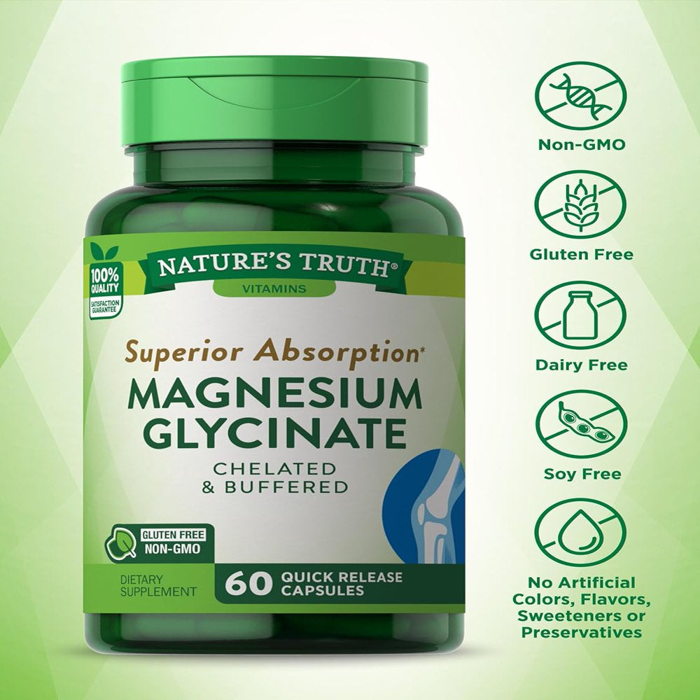 Magnesium Glycinate Capsules | 665Mg | 60 Count | Non-Gmo, Gluten Free Supplement | by Nature'S Truth