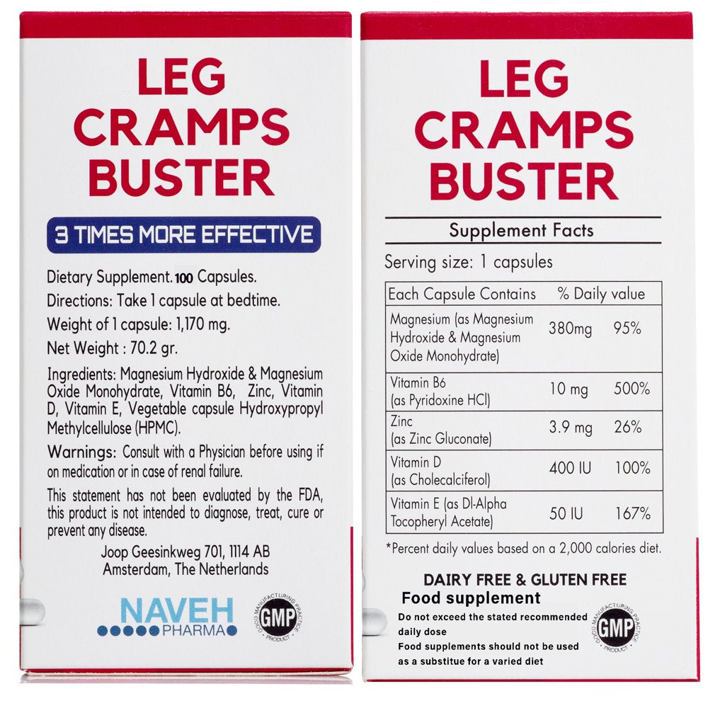 - ALL NATURAL MUSCLE RELAXER - Our cramps relief pills are vegan, gluten-free, and do not contain any additives. This muscle relaxer for aches provides a highly effective solution to muscle spasms and leg cramps.
