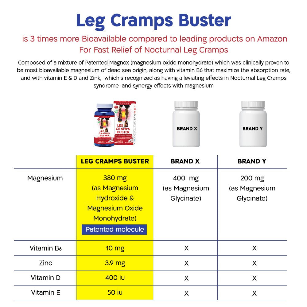 - THREE TIMES HIGHER ABSORPTION - Magnox magnesium for restless legs is made of highly refined magnesium salt extracted from the dead sea. While other magnesium supplements are only absorbed by the blood, our patented molecule is absorbed directly by the individual cells and has the highest absorption levels.