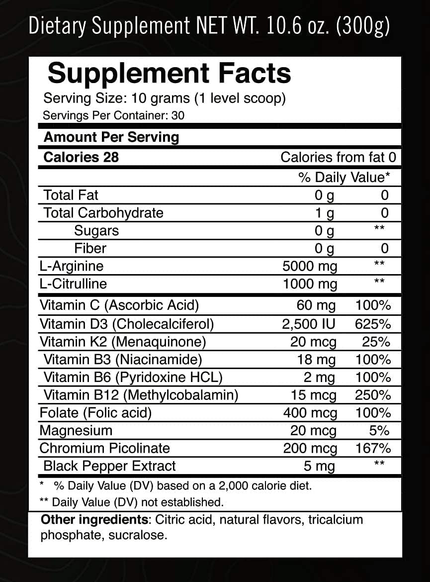 | L-Arginine & L-Citrulline level | 5000mg / 1000mg | 5g / 1g | 500mg / 1000mg | 5g / 1g | 5000mg / 1000mg |