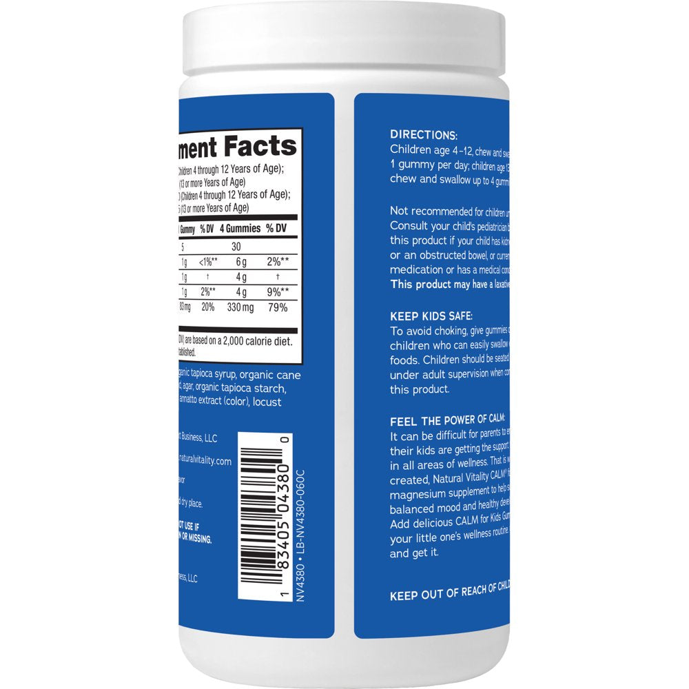 Natural Vitality CALM Kids Gummies are a kid-friendly magnesium supplement to support balanced mood and healthy development (1). Formulated with Magnesium Citrate, this magnesium gummy is gentler on the stomach and better absorbed than magnesium oxide. With 83 mg of magnesium per gummy, Natural CALM gummies for kids help support muscle, heart, brain and nervous system health while replenishing healthy magnesium levels (1). Vegan, gluten-free ingredients combine in these magnesium gummies to create a flavorful sweet citrus taste with only 1 gram of sugar per serving.(1) These statements have not been evaluated by the Food and Drug Administration. This product is not intended to diagnose, treat, cure or prevent any disease.