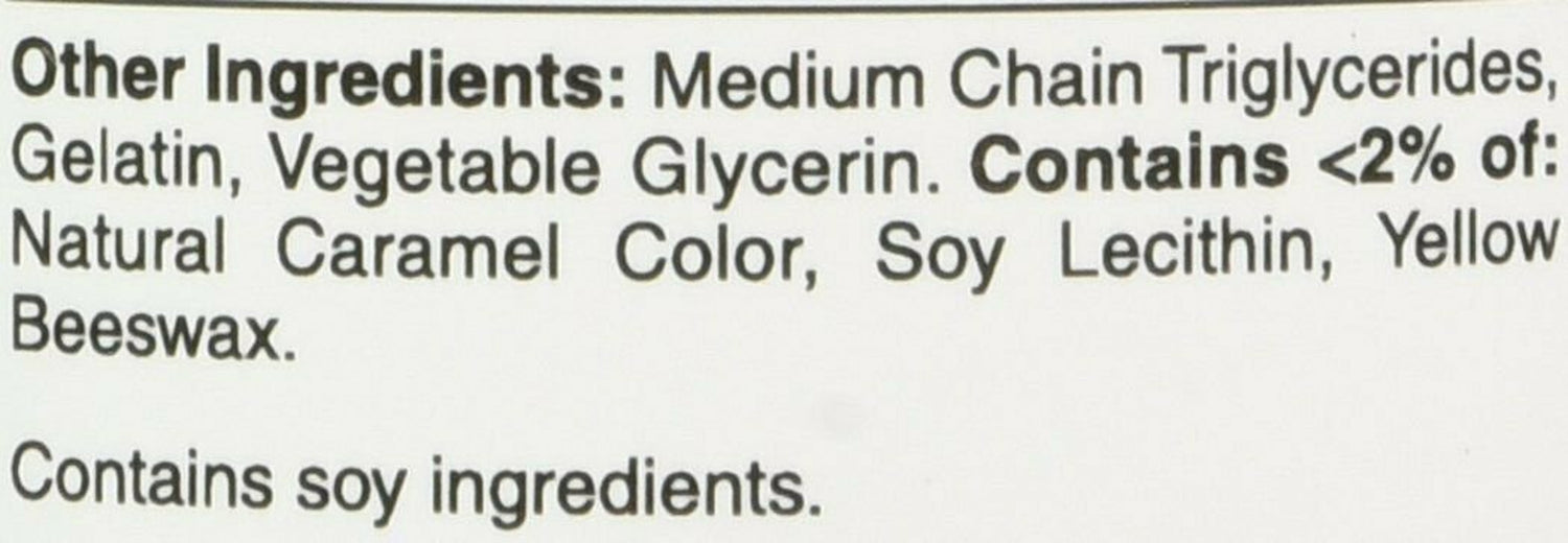 Medium Chain Triglycerides, Gelatin, Vegetable Glycerin. Contains <2% of: Natural Caramel Color, Soy Lecithin, Yellow Beeswax./div>