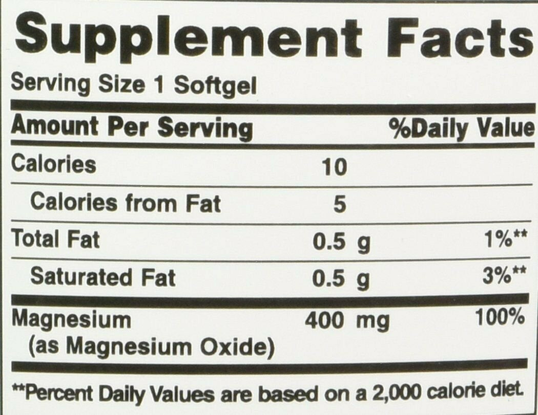 Nature's Bounty High Potency Magnesium provides 100% of the daily recommended value for this important mineral in just one soft gel. Magnesium is essential for supporting bone health and plays an important role in maintaining bone mineralization. As a component in over 200 enzymes in the body, Magnesium is also involved in muscle contractions, nerve impulses, energy metabolism and protein formation.