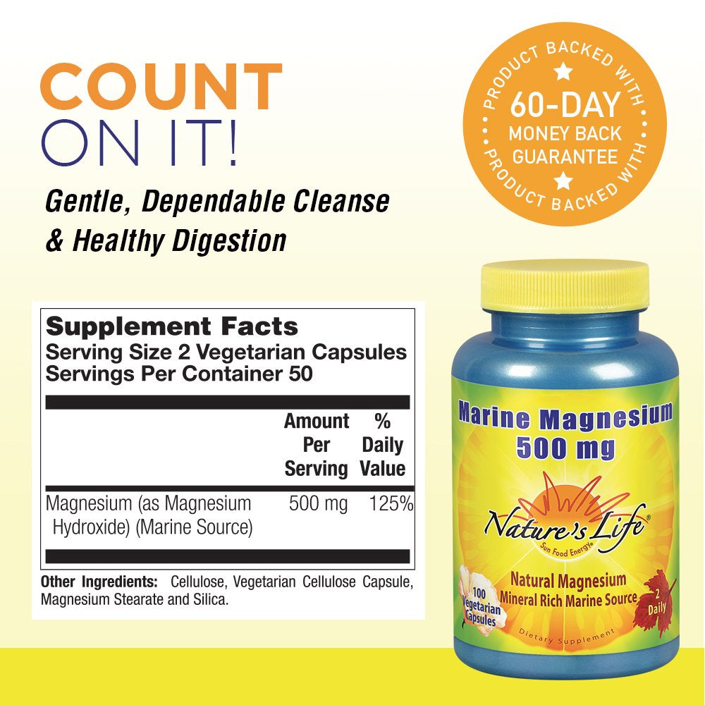 Nature'S Life Marine Magnesium 500Mg | Healthy Digestion & Regularity Formula with Magnesium Hydroxide from Northern Sea Waters | 100 Vegetarian Caps