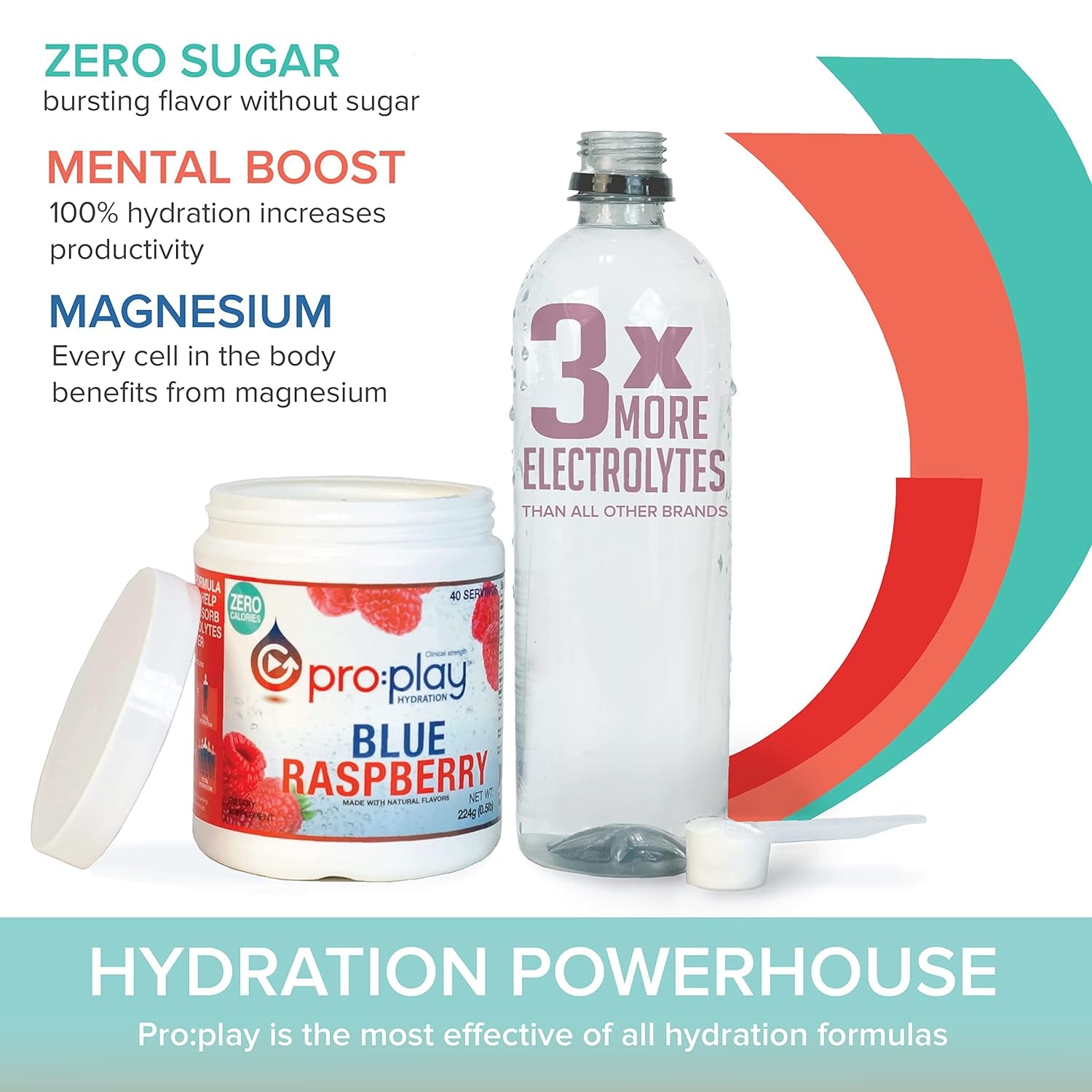 Pro:Play Electrolyte Hydration Drink with Magnesium, Sugar Free, 40 Serving Tub, Blue Raspberry