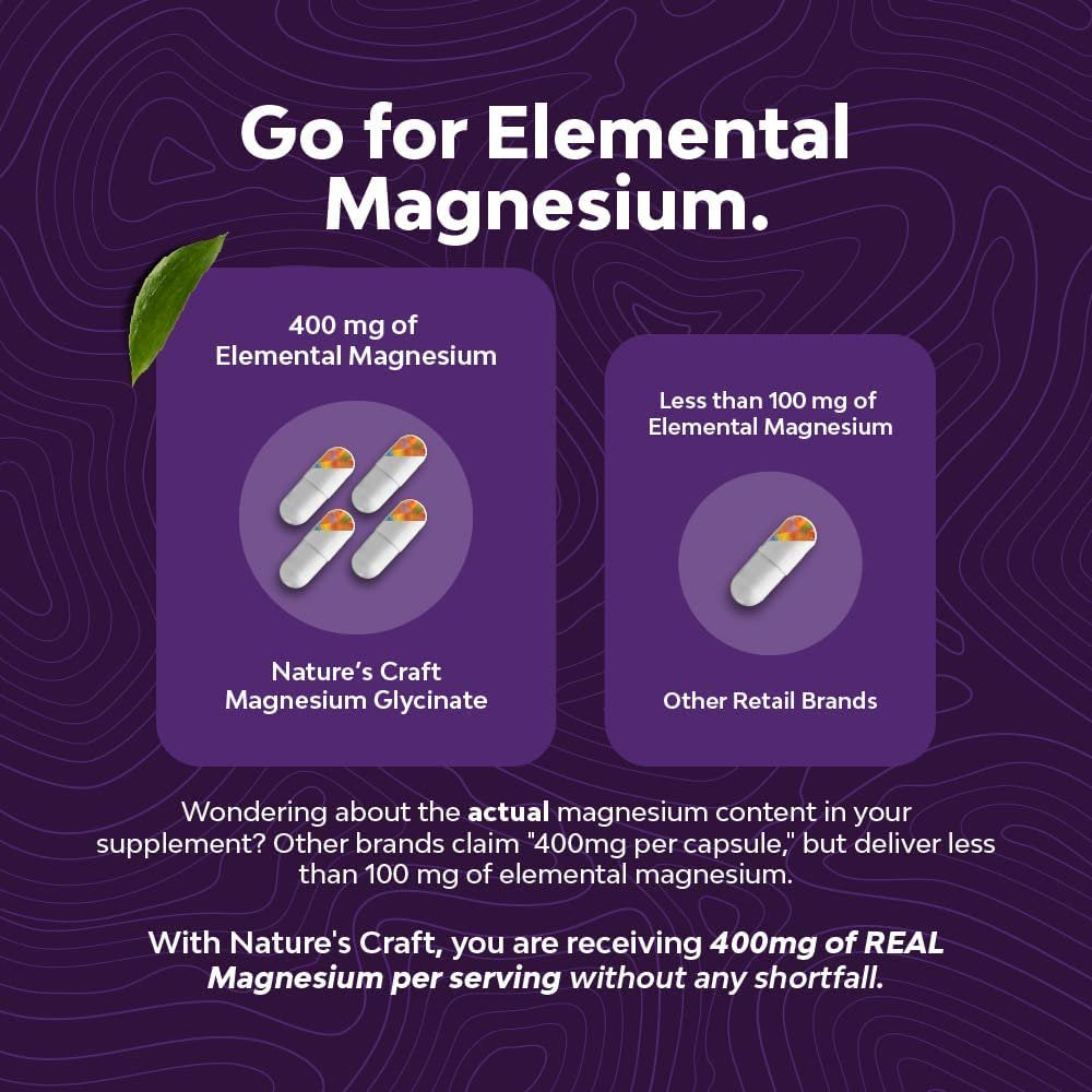 Pure Magnesium Glycinate 400Mg per Serving Capsules - Nature'S Craft High Absorption Magnesium Supplement for Women and Men 120Ct