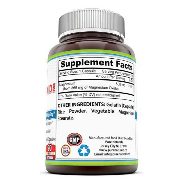 Pure Naturals Magnesium Oxide 500Mg 90 Capsules Supplement | Non-Gmo | Gluten Free | Made in USA
