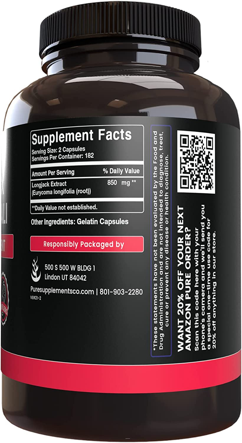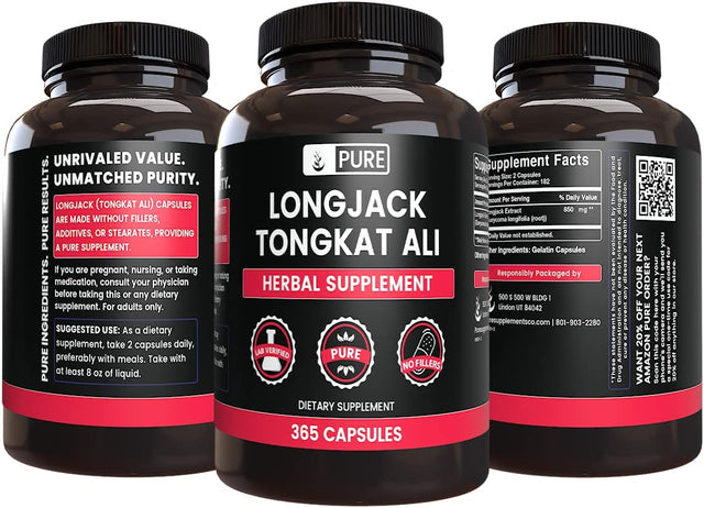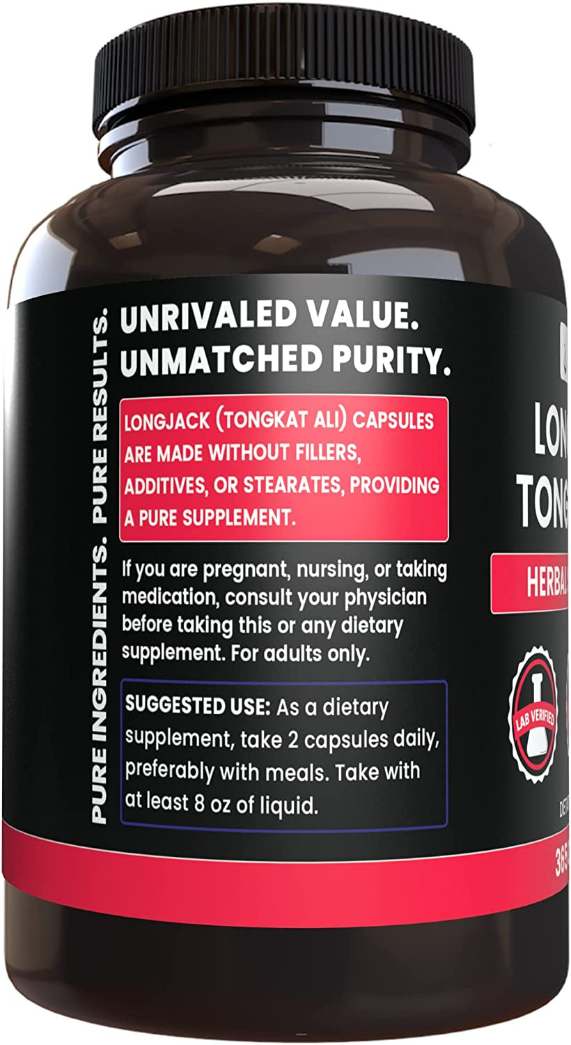 Pure Original Ingredients Longjack (Tongkat Ali) (365 Capsules) No Magnesium or Rice Fillers, Always Pure, Lab Verified