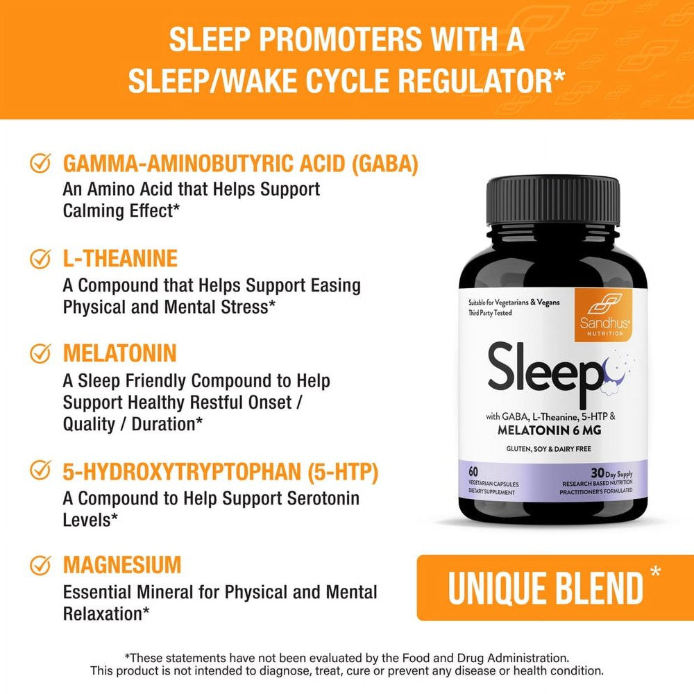 Sandhu'S Sleep Support Capsules, 6MG Melatonin With, GABA, L-Theanine, 5-HTP & Magnesium, 60 Counts