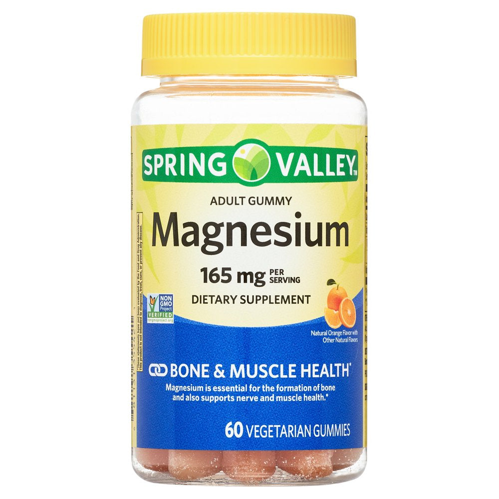 Spring Valley Bone and Muscle Magnesium Supplement Gummies, Orange, 165 Mg, 60 Count