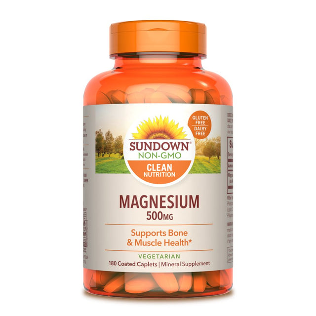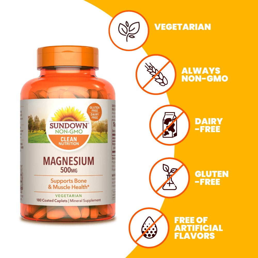- Sundown Magnesium 500mg, Supports Bone and Muscle Health, 180 Coated Caplets, 6 Month Supply