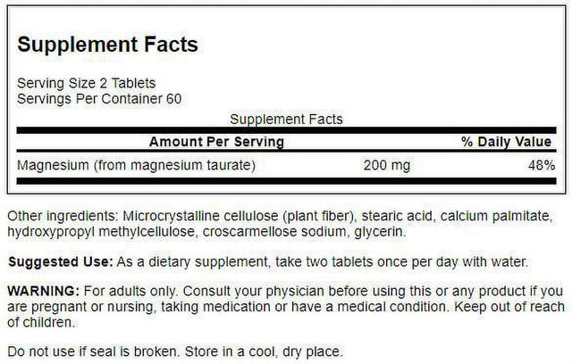 Swanson Magnesium Taurate 100 Mg 120 Tablets