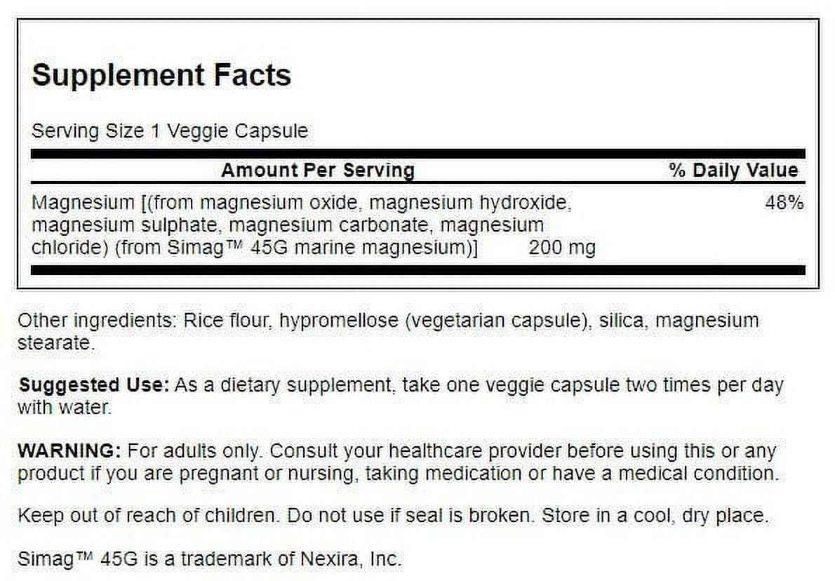 Swanson Marine Magnesium - Featuring Simag 200 Mg 60 Veg Caps 3 Pack - 3 Pack is backordered and will ship as soon as it is back in stock.