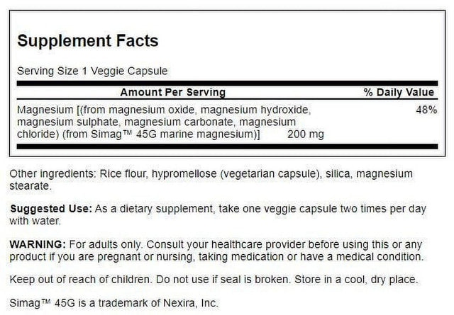 Swanson Marine Magnesium - Featuring Simag 200 Mg 60 Veg Caps 4 Pack - 4 Pack is backordered and will ship as soon as it is back in stock.