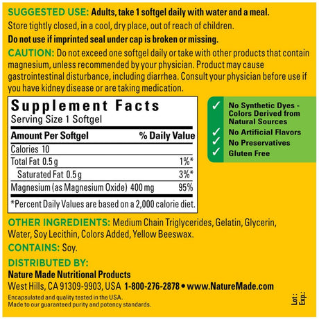 Nature Made Magnesium 400 Mg., 150 Liquid Softgels