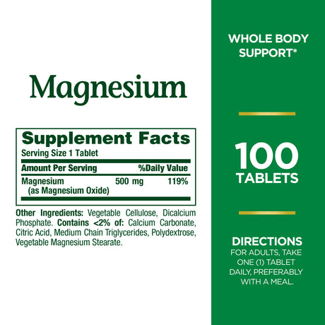 Nature'S Bounty Magnesium 500 Mg Tablets 100 Ea