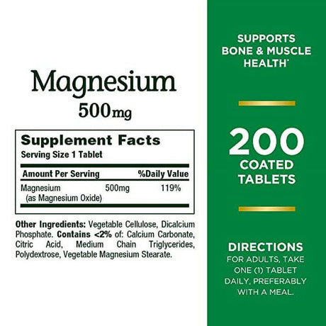 Nature'S Bounty Magnesium 500Mg Size, Coated Tablets 200 Ea